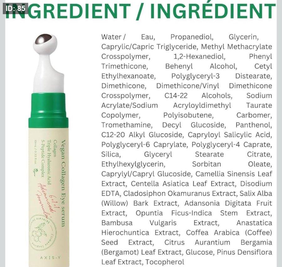 رول سيروم العين من AXIS-Y غني بالكولاجين النباتي المستخلص من مصادر طبيعية، يساعد على ترطيب منطقة تحت العين وشدّها وتقليل مظهر التجاعيد والهالات السوداء.